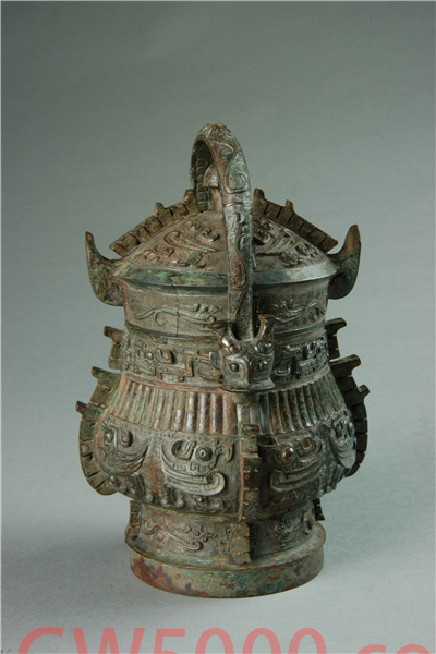 卣大体呈椭圆形,有盖,盖隆起,上有瓜棱状纽,沿下折。器身子口,鼓腹,圜底,圈足,并有提梁。整器分段饰有夔龙纹、凤鸟纹、瓦棱纹等,并有突起的扉棱。器盖对铭“祖辛”二字。这件铜卣造型典雅、纹饰清晰,是典型的三层纹饰结构,体现了商代晚期青铜铸造的高超工艺。