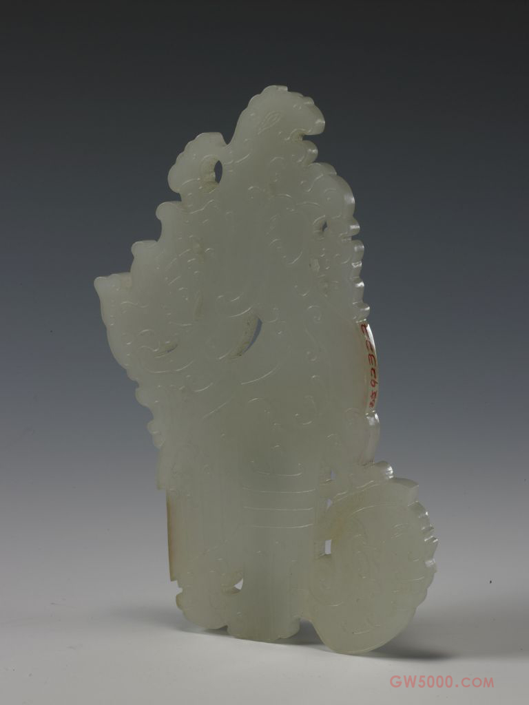 白玉鹰攫人首佩,清乾隆,高12.9厘米,宽6.5厘米。