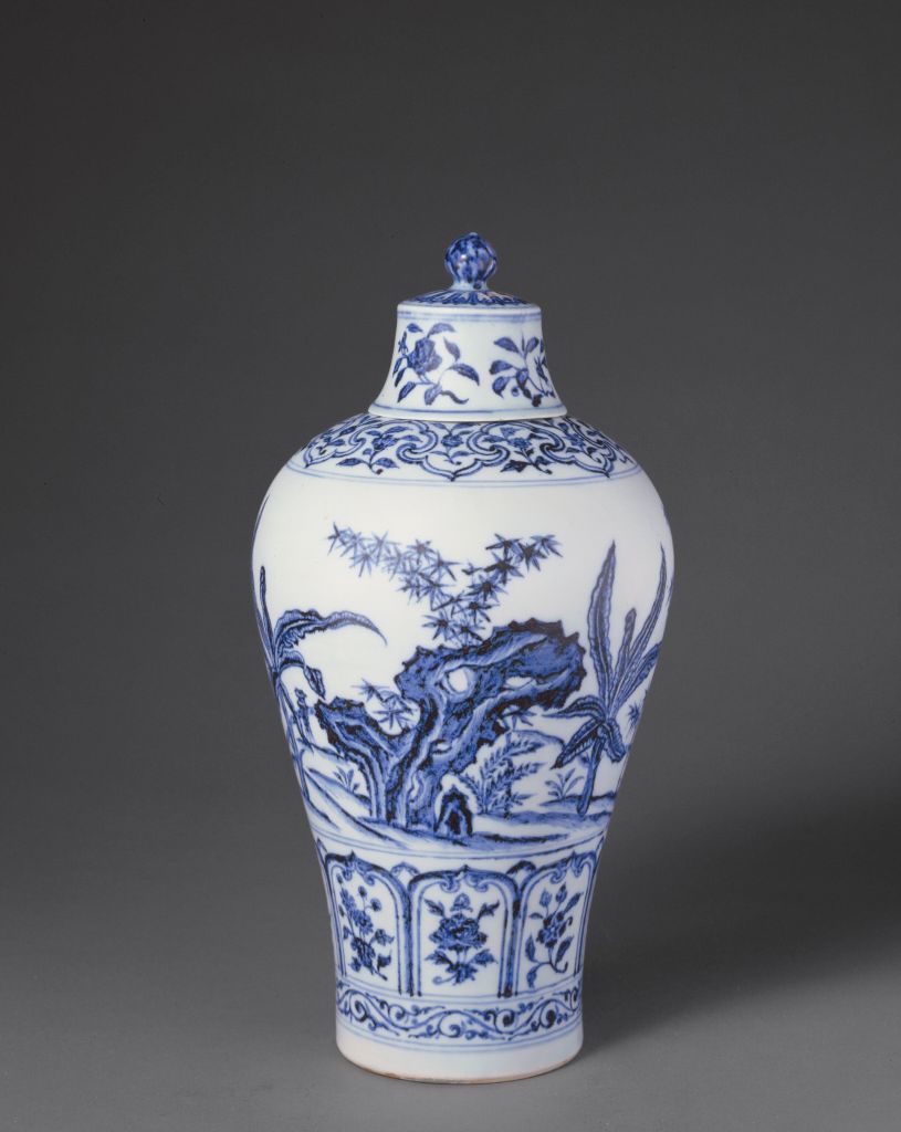 此梅瓶造型秀美,青花色泽浓艳而有变化,使画面具有层次感,为永乐青花瓷器中的佳品。