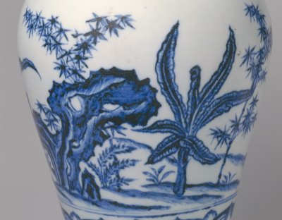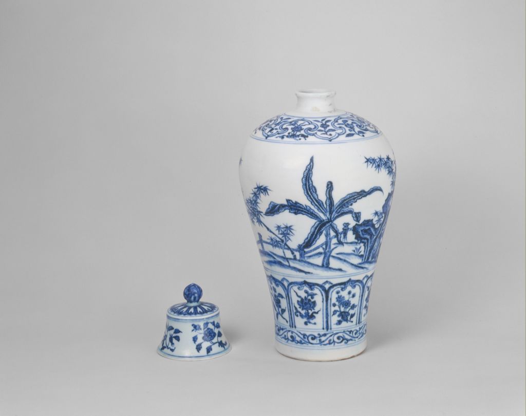 青花竹石芭蕉纹梅瓶,明永乐,高41厘米,底径12.2厘米。