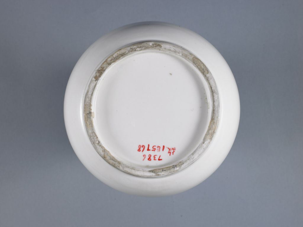 此尊造型端庄古朴,釉面质感如象牙般光洁温润,是明代德化窑白瓷中的精品。古代著名民窑之一,以烧白瓷著称,窑址在今福建省德化县。宋元时已烧制青白瓷,明代主烧白瓷。其制品以人物塑像最为突出,如达摩、观音等,此外还有炉、尊、壶、乐器等器型,均名传于世。德化窑的瓷质优异,胎、釉浑然一体,色泽光润明亮,如脂似玉,洁白之中又闪牙黄,被称为“象牙白”、“猪油白”,为当时中国白瓷之代表。清代德化窑继续烧制白瓷,但产品以日用器皿为主,诸如梅花杯、八仙杯、花瓶、文具,釉色白中透青。此外,德化窑还烧制青花和五彩器。德化窑白瓷曾大量远销到日本、印度、伊朗、埃及及欧洲等国家,法国人称之为“中国白”、“鹅绒白”。