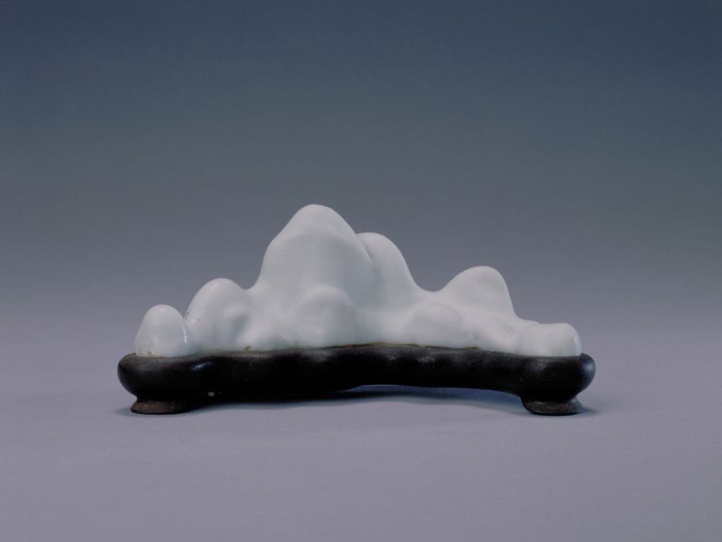 青白釉山形笔架,明,高3.9厘米,长10.8厘米。清宫旧藏。
