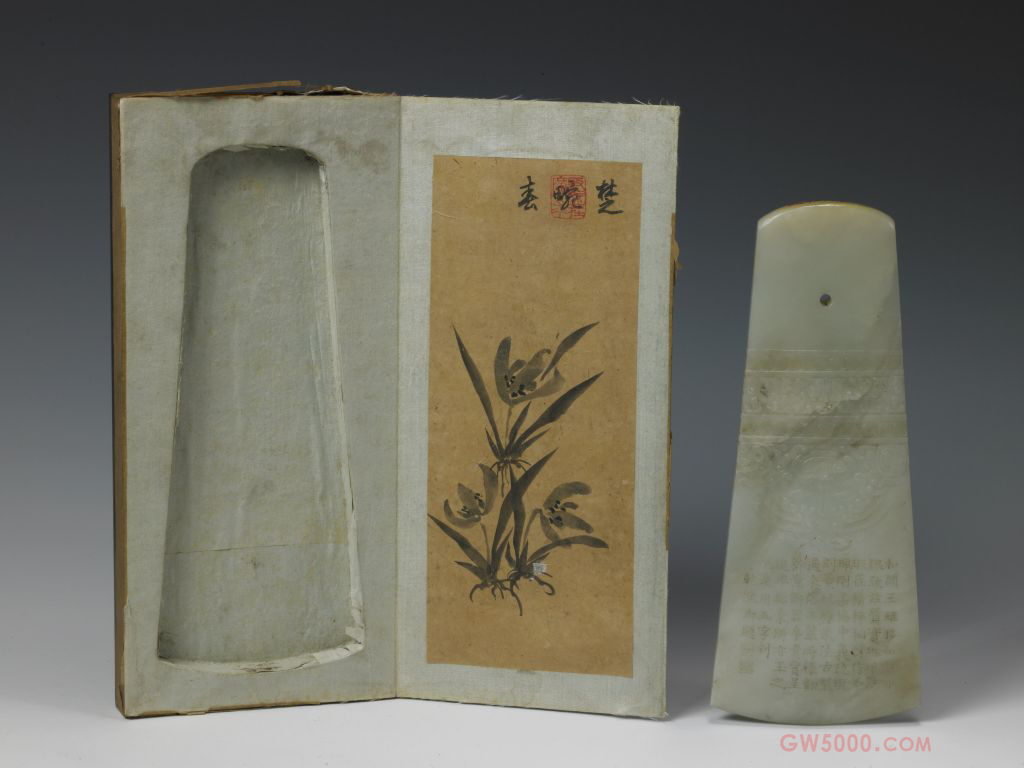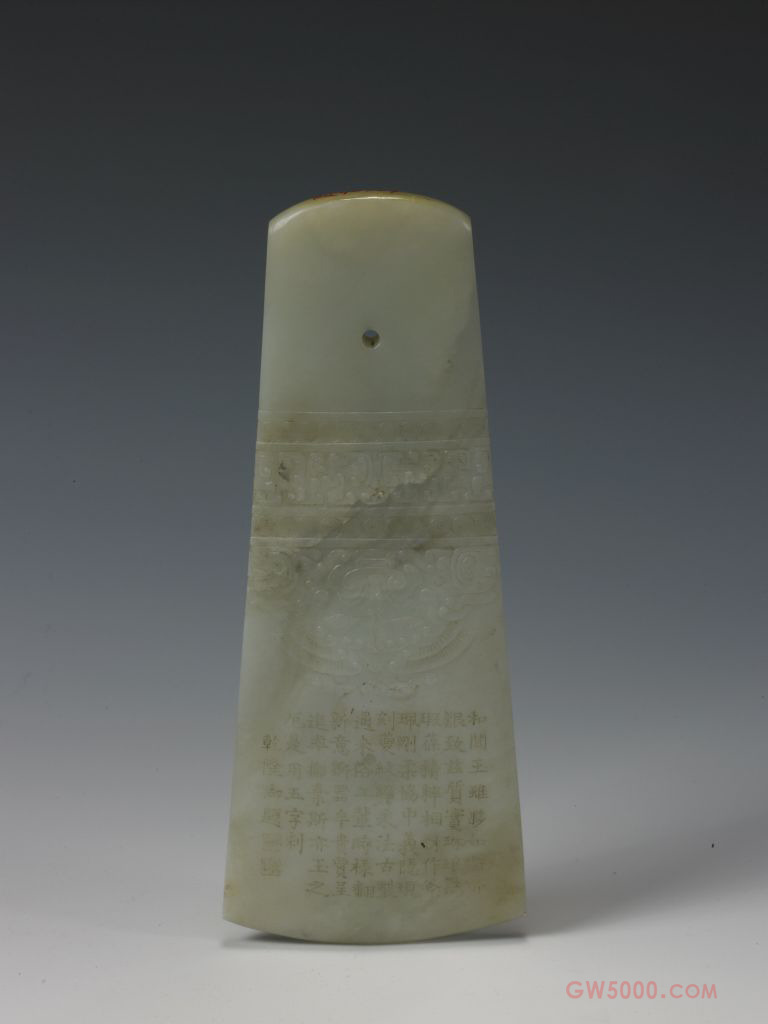 白玉斧佩,清乾隆,长18.2厘米,宽7.4厘米。