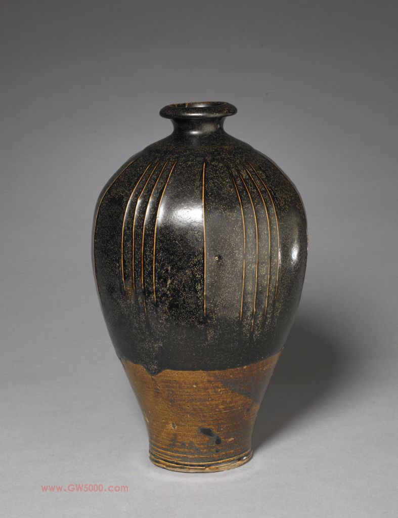 黑釉刻花玉壶春瓶 ..