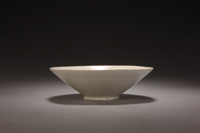 碗敞口,斜壁内收,圈足。里外施白釉,釉色洁白,底无釉。