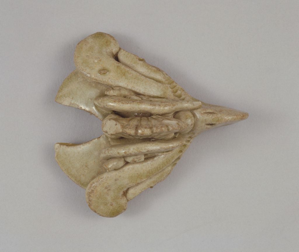 六朝至唐代,我国与西亚各国文化交流频繁,波斯的一种鸟首壶传到我国,影响所及,在唐代的青瓷、白瓷及三彩釉陶中出现了凤首壶,其中以这件青釉凤首龙柄壶最为精美。此壶既吸取了波斯萨珊王朝(226-642年)金银器造型的特点,又融入了我国传统的龙凤装饰艺术,集塑贴、模印、刻花、划花等装饰技法于一体,体现了唐代制瓷工匠的高超技艺。瓷器釉色名。一种含铁量在1%—3%左右,经高温还原气氛中烧成,呈现青绿色泽的釉,是中国最早的颜色釉。商周时期原始瓷器的青黄釉色是青釉的初级阶段。汉代已烧制出釉色纯正的青釉瓷器。至唐代日臻完美,被誉为“千峰翠色”。宋代的粉青、梅子青如同青玉,色泽与质感之美达到顶峰。明清之际,永乐朝的翠青、冬青(即东青),雍正朝的粉青、豆青等均色调匀净,苍翠欲滴,烧制水平已臻于炉火纯青的境界,出现了很多名贵品种。