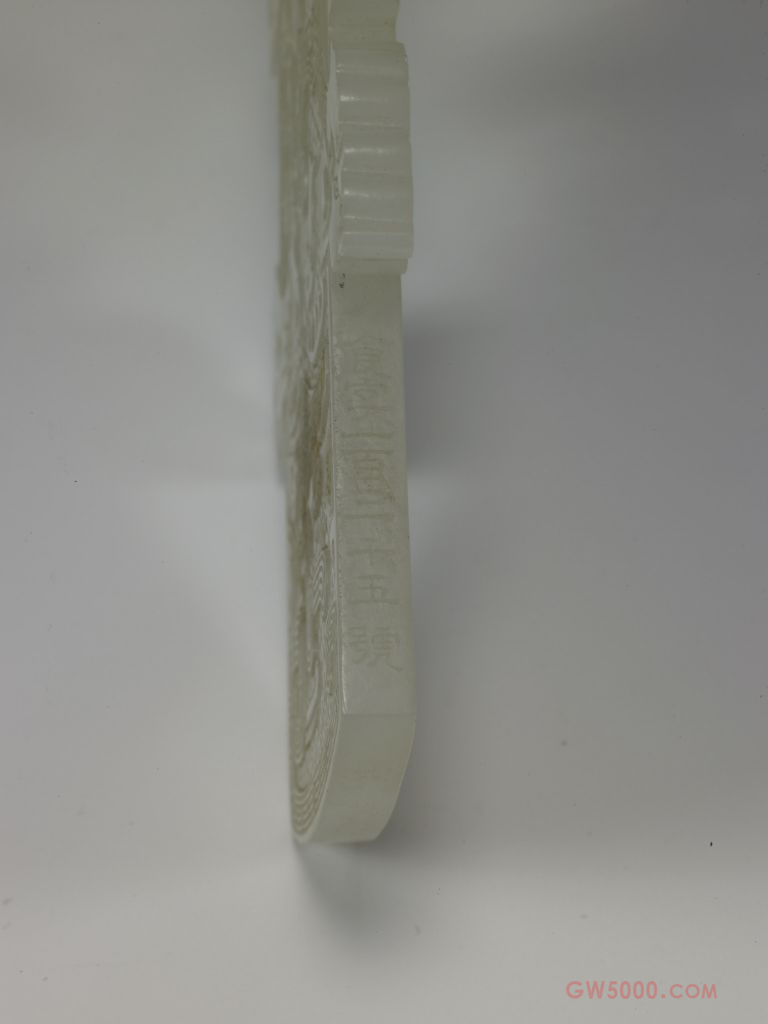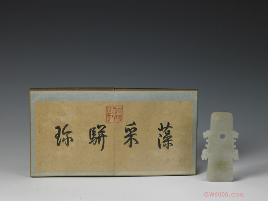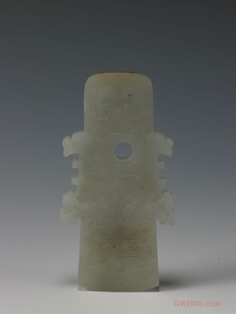 白玉仿古斧佩,清乾隆,长12.4厘米,最宽6.3厘米,厚0.7厘米。