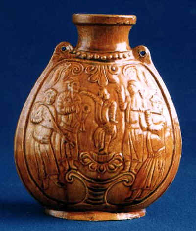 黄釉舞乐扁壶