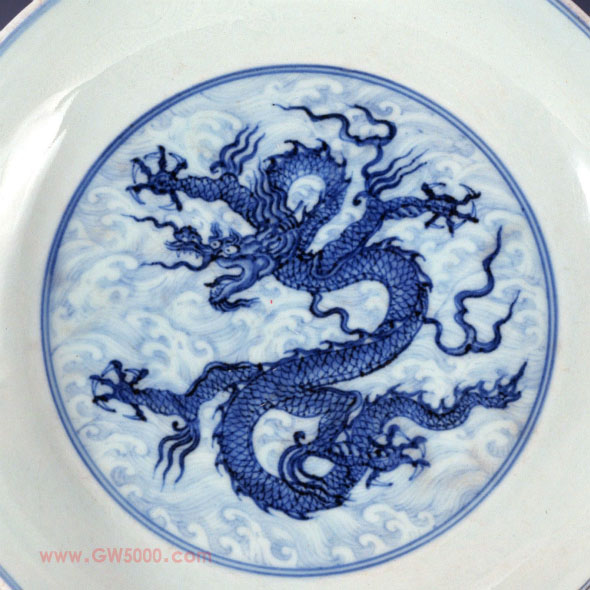 明宣德景德窑青花海水龙纹盘