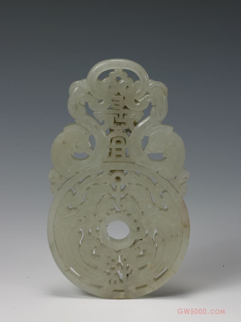 白玉长宜子孙佩,清乾隆,长13.6厘米,宽7.9厘米,厚0.65厘米。