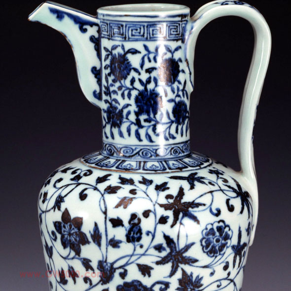 明宣德景德镇窑青花缠枝花卉纹执壶