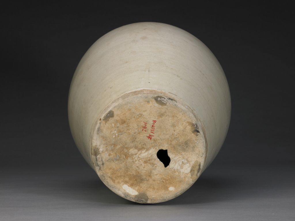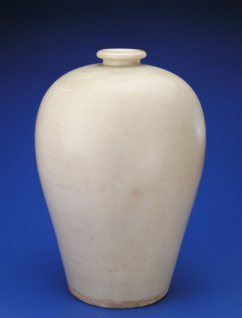 白釉梅瓶,唐,高42.5厘米,口径9厘米,底径17.5厘米。