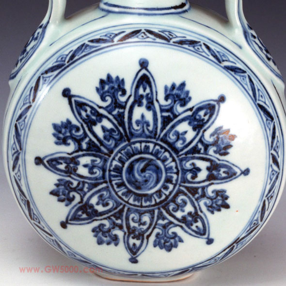 明宣德景德镇窑青花轮花纹双耳扁壶