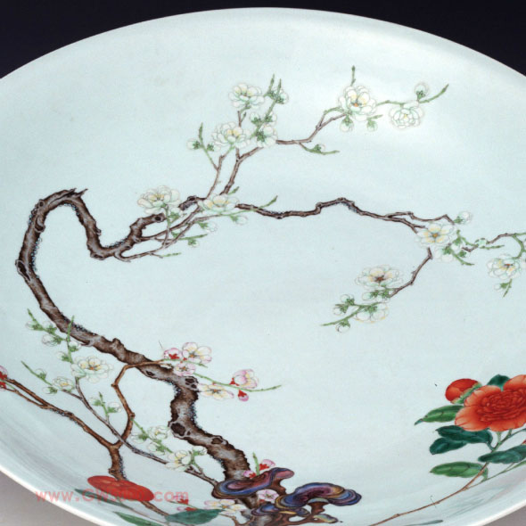 清雍正景德镇窑粉彩过枝桃牡丹纹盘