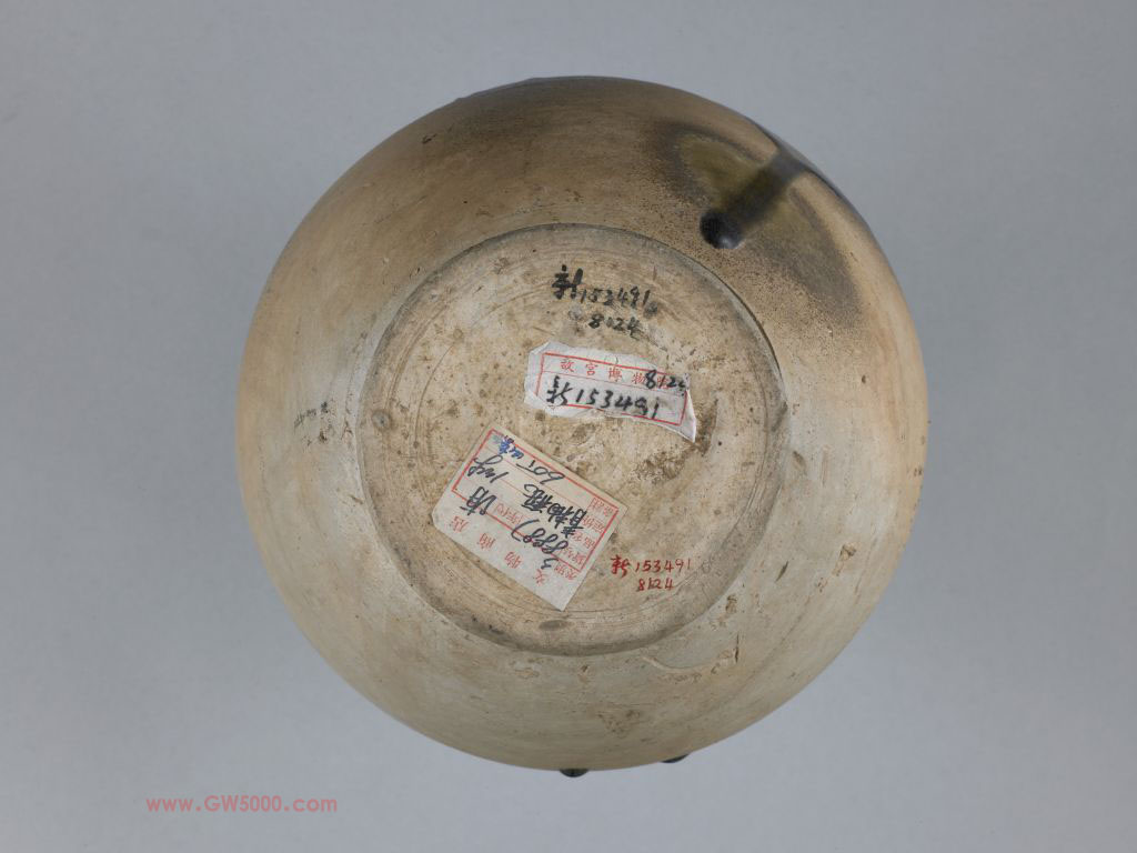 瓶盘口,短颈,溜肩,长圆腹,圈足。瓶身施半截青绿釉,釉层透明,釉面有细碎开片,釉向下垂流,形成一种特殊的自然装饰效果。