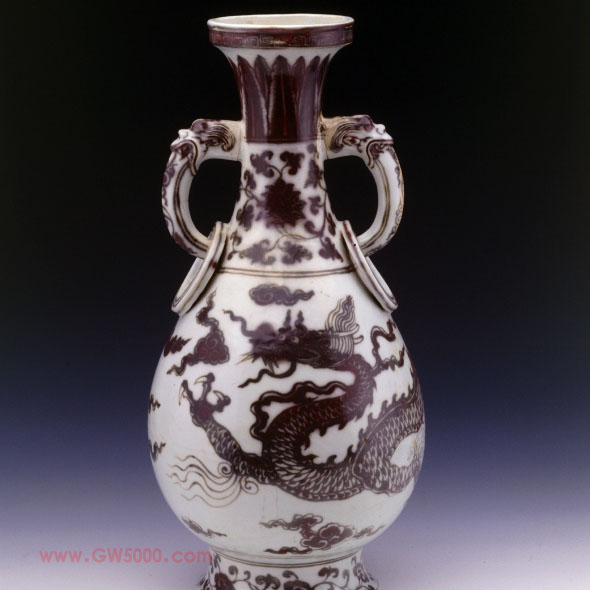 明洪武 景德镇窑釉里红云龙纹环耳瓶