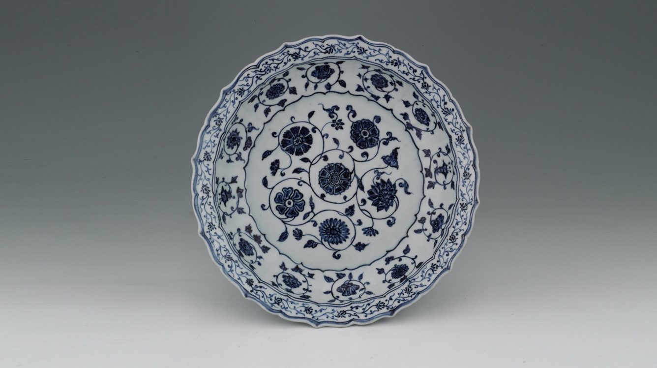 造型典雅,胎质精细,各种花卉装饰图案疏密得当,令人赏心悦目。由于使用进口的“苏泥勃”清料,青花发色浓艳,图案自然晕散,铁黑色结晶斑深入胎骨,是宣德瓷的代表作品。