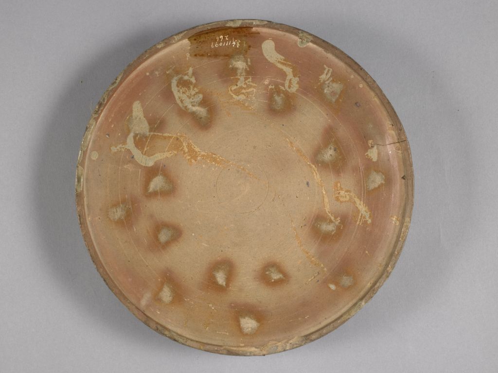 青釉圆槅,东晋,高4.5厘米,口径21.1厘米,底径22.6厘米。