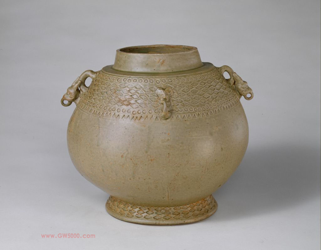 系即器耳,以双系形式为常见。其技法为采用双泥条平行排列的形式贴塑在瓷器表面,并在双系上刻划锦纹。瓷器装饰技法之一。以刻有花纹的印模在成型后半干的坯体上压印,使花纹印到坯体上,施釉烧成后,胎上的印纹在釉层的掩映下若隐若现,称“模印”。