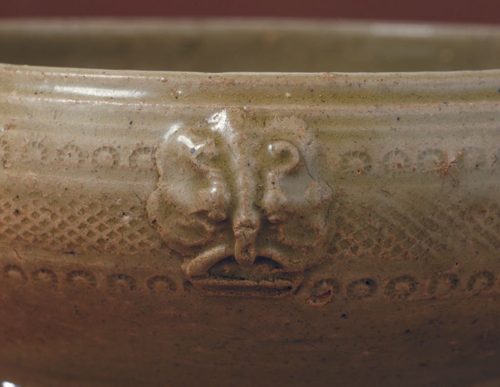 此器属于南方青瓷越窑系,其釉色匀净,造型端庄古朴,纹饰清晰、简略、自然,是早期青瓷的佳作。瓷器釉色名。一种含铁量在1%—3%左右,经高温还原气氛中烧成,呈现青绿色泽的釉,是中国最早的颜色釉。商周时期原始瓷器的青黄釉色是青釉的初级阶段。汉代已烧制出釉色纯正的青釉瓷器。至唐代日臻完美,被誉为“千峰翠色”。宋代的粉青、梅子青如同青玉,色泽与质感之美达到顶峰。明清之际,永乐朝的翠青、冬青(即东青),雍正朝的粉青、豆青等均色调匀净,苍翠欲滴,烧制水平已臻于炉火纯青的境界,出现了很多名贵品种。