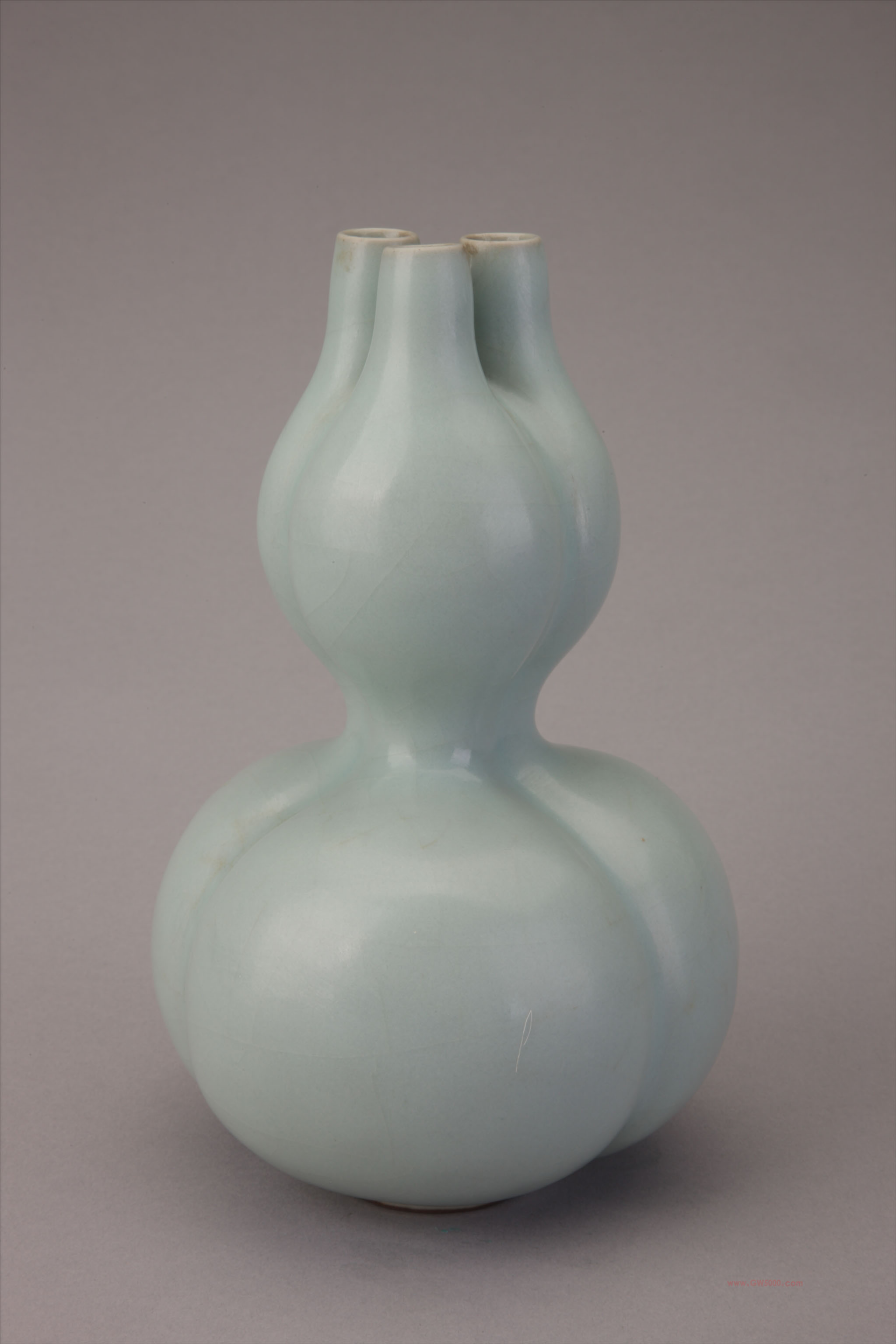 清乾隆款粉青釉三孔葫芦形瓷花插