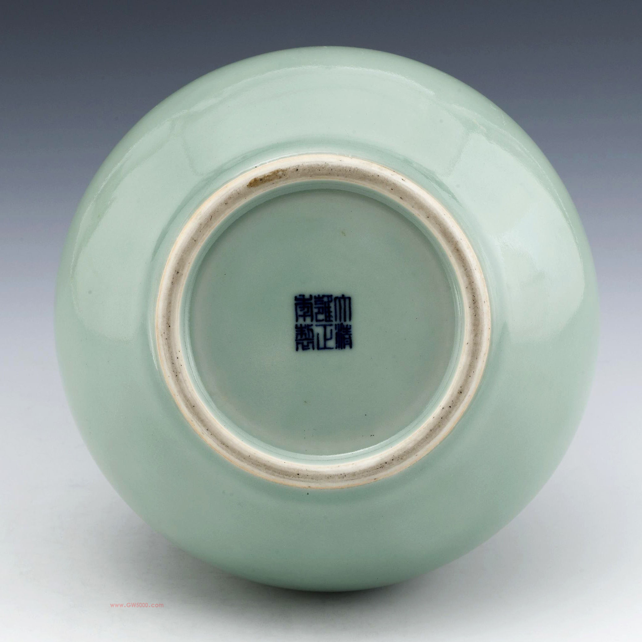 青釉是我国最古老的釉色品种,至南宋龙泉窑达到了高峰。雍正时的青釉器胎土洁白细腻,托色性能极佳,青釉发色稳定,透明莹润,其中以豆青为主色调,青绿温润,如冰似玉,达到了历史上青瓷烧造的最高水平。