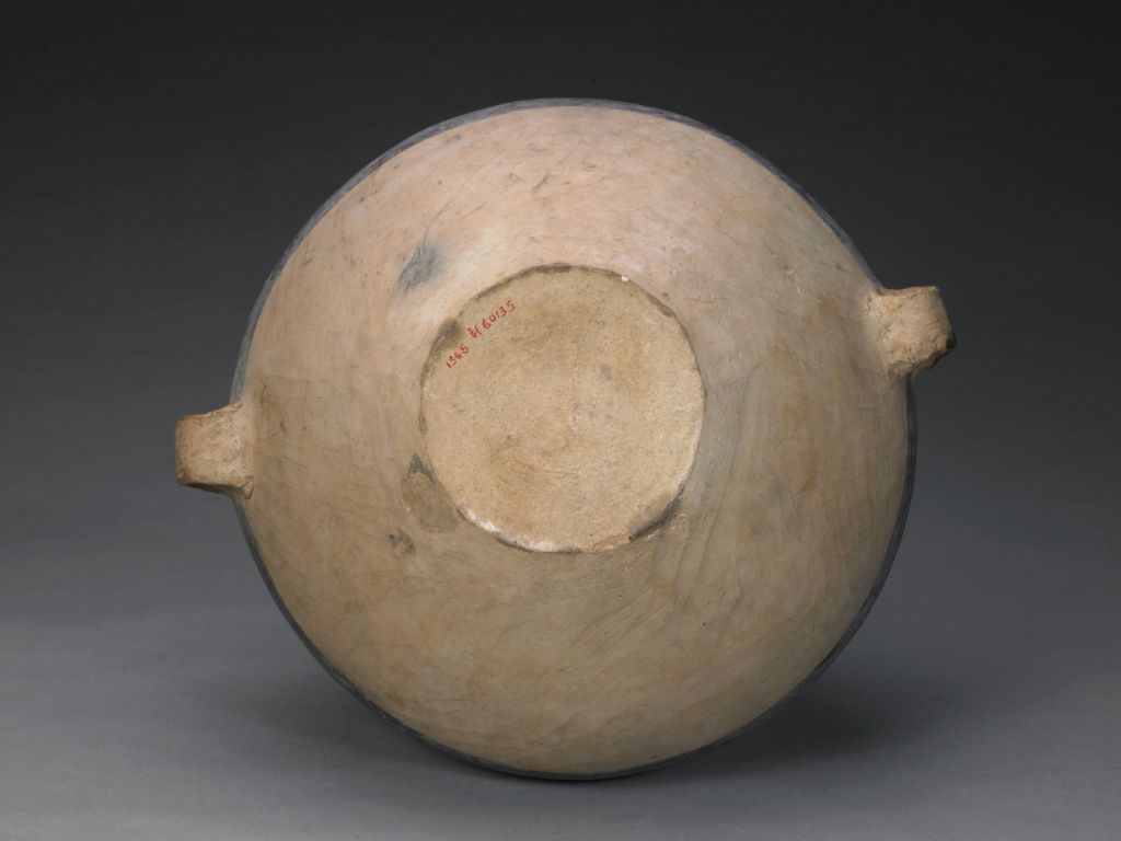 彩陶出现于6000多年前,是在烧造红陶的基础上,在黄河流域自东向西发展起来的。此件彩陶属于马家窑文化半山类型。半山类型彩陶的特点是用红彩和黑彩两色相间的锯齿纹为骨架构成各种图案,细部再装饰几何纹、网格纹等,装饰花纹比马家窑类型彩陶复杂,所绘图案面积较广,从口沿至下腹部都有。最常见的有水波纹、漩涡纹、葫芦纹、菱形网纹、平行带纹、方格纹、蛙纹和附加堆纹等。新石器时代的一种主要以赭、红、黑、白等色绘饰的手制陶器。我国新石器时代的彩陶艺术,成就卓越,具有浓厚的生活气息和独特的艺术风格。青铜器上的几何纹饰是一些点、线、圈、角的集合。几何纹的渊源可以追溯到新石器时代的陶器纹饰。几何纹亦是青铜器上最早出现的纹饰形式,在春秋战国之际用作主体纹饰已屡见不鲜。系即器耳,以双系形式为常见。其技法为采用双泥条平行排列的形式贴塑在瓷器表面,并在双系上刻划锦纹。马家窑文化因1924年最初发现于甘肃省临洮县马家窑村而得名。一般认为马家窑文化是黄河中游仰韶文化庙底沟类型的进一步发展,过去亦有人称之为“甘肃仰韶文化”。据碳14法测定年代,距今5000年左右。马家窑文化主要分布于甘肃、青海地区,可分为石岭下、马家窑、半山、马厂四个类型。马家窑文化陶器造型主要有钵、瓮、盆、双耳罐等。陶器质地有泥质红陶、灰陶、夹砂红陶等。马家窑文化的彩陶特别发达,与仰韶文化彩陶相比,马家窑文化彩陶图案具有显著的旋动特征,其旋动的方式丰富多样,或交错盘旋,或来往反复,使人感到变化莫测,回味无穷。漩涡纹是以旋转的漩涡为基本主题的纹样,黄河流域仰韶文化的彩陶中经常使用漩涡纹。它来源于黄河中上游的原始部落,人们在黄河两岸的渔猎生活中产生了对水的认识,湍急的黄河之水形成的漩涡给人们以创作灵感,从而绘制出了漩涡纹。亦称火纹。《周礼·考工记》有“火以圜”之记载。火纹是太阳的标志,因此其特征是圆形的,中间略有突起,沿边有4到8道旋转的弧线,表示光焰的流动。在青铜器上最早的涡纹见于二里头文化期的斝腹部。从二里头文化期直至战国都可在器物上见到涡纹装饰。黄河,中国的第二大河,起源于青海省,在山东省北部汇入渤海,全长5464公里,流域面积75.24万平方公里。