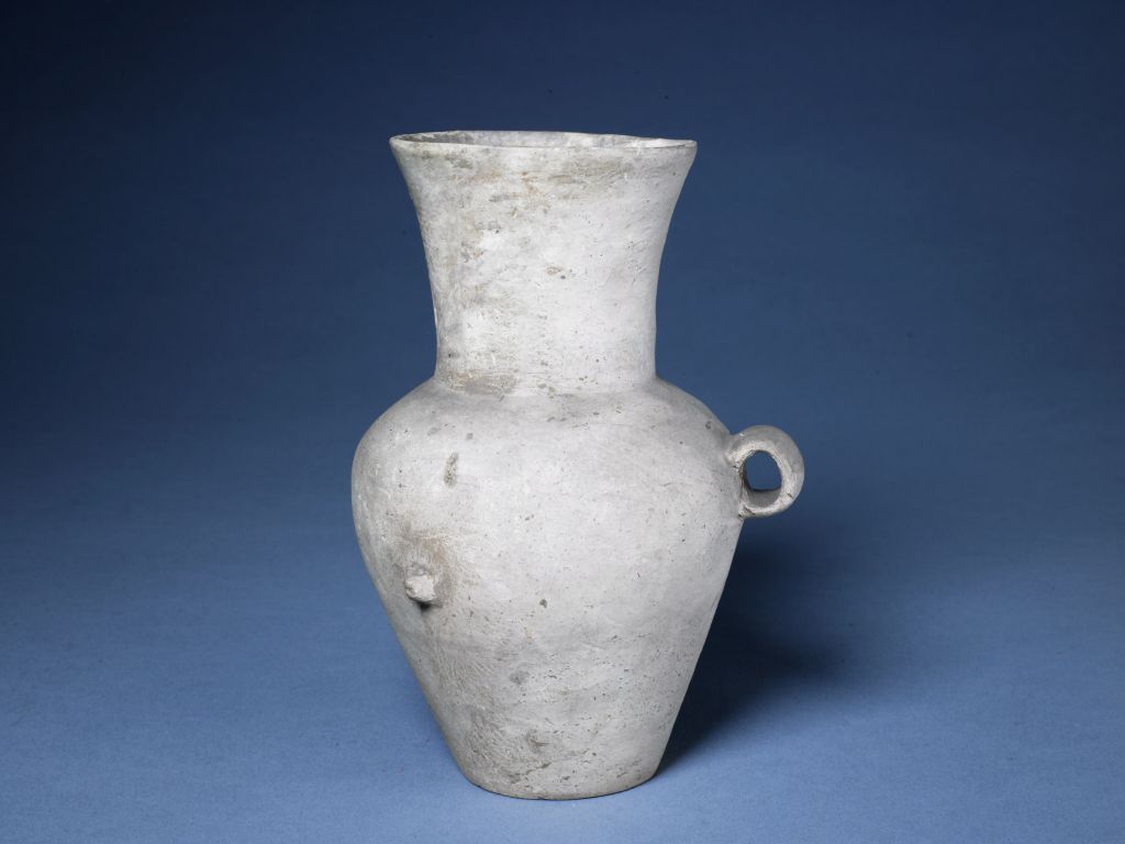 白陶双系壶,新石器时代大汶口文化,高19厘米,口径8.8厘米,底径6厘米。