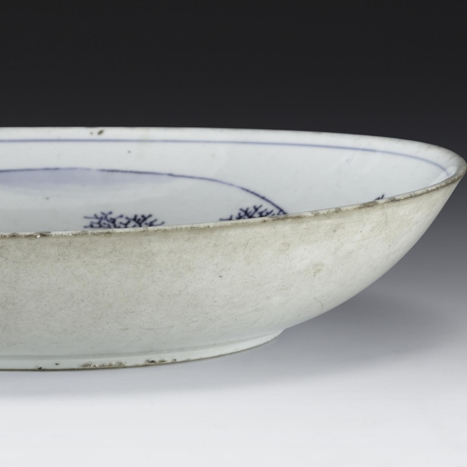 上海博物馆此盘曾于2005年上海博物馆和英国巴特勒家族联合举办的中国《十七世纪景德镇瓷器特展》中展出,展览中另一件巴特勒先生收藏的青花钱塘梦故事图碟与此盘图案几乎一样,是同一主题作品。
