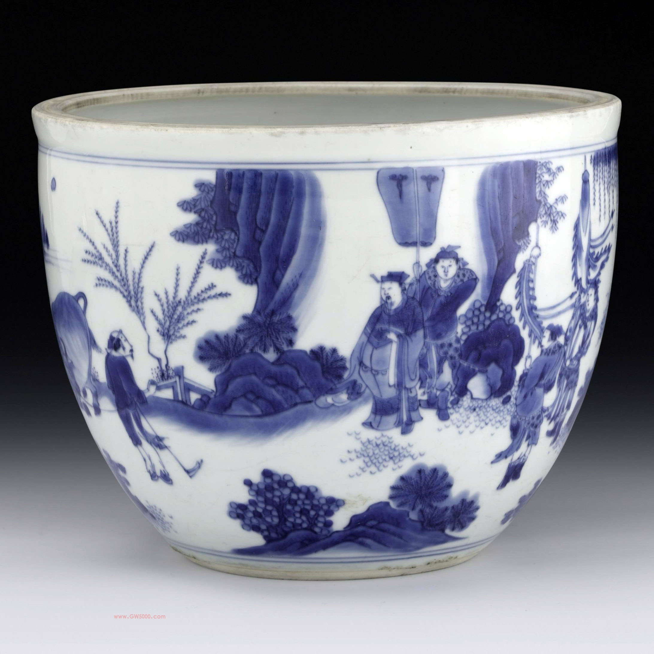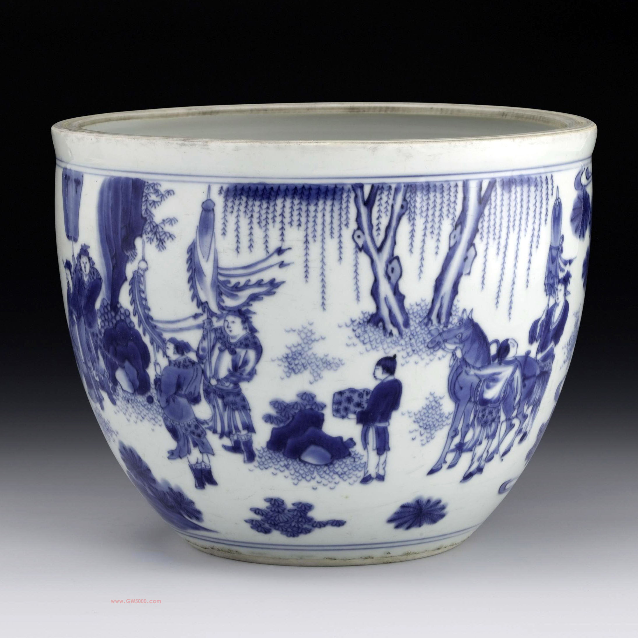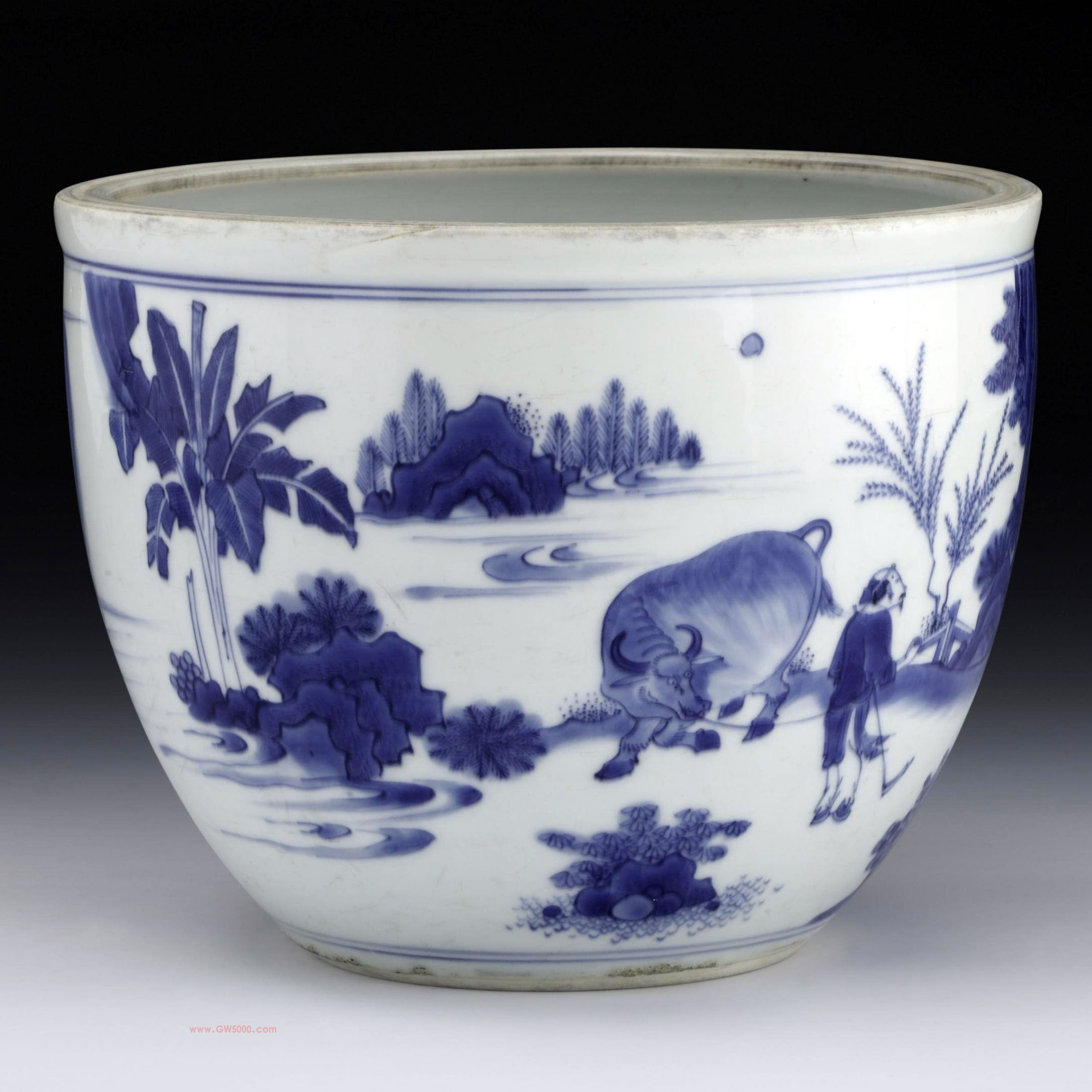 这件茶缸描绘的是汉宣帝时丞相邴吉外出,见一群人在斗殴没有去制止,而看到一头牛在吃力地拉车,他却停下叫人去询问。下属不解,他解释说斗殴有地方属官专管,而牛影响农事,直接关系国计民生。