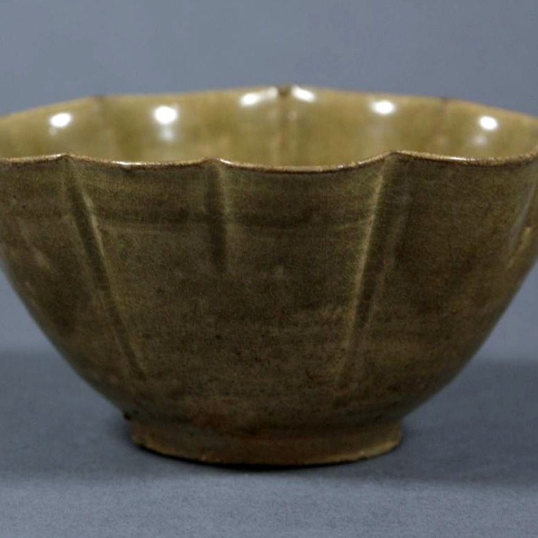 晚唐至五代越窑烧造十分兴盛,尤以茶具著名。原料加工和制作都十分精细,器形规整,胎质细腻,胎面光滑,釉层匀净,有“越泥似玉之瓯”的美誉。当时作为茶具的碗,除了直口浅腹的造型,还可见这种葵花式的样式。