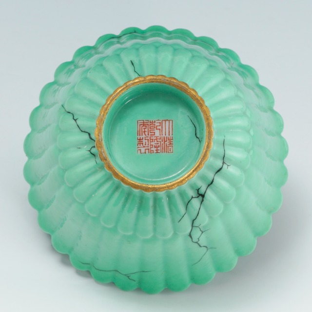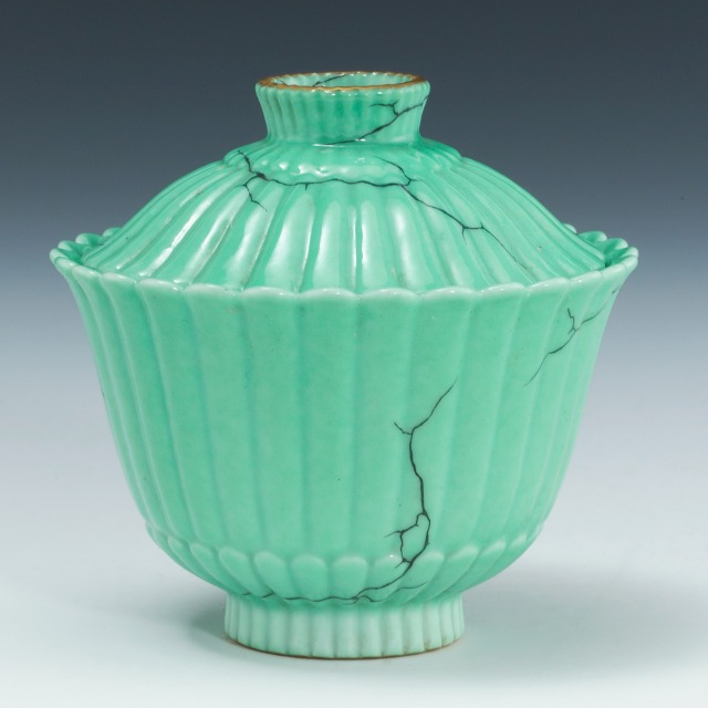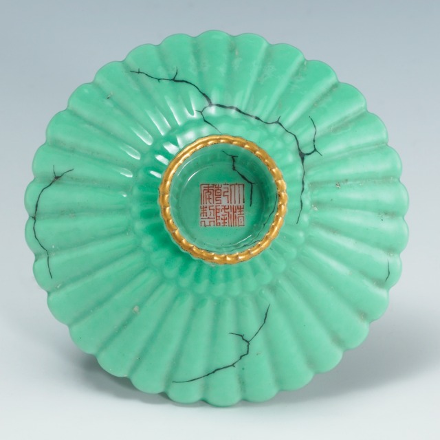 景德镇窑孔雀绿釉印蟠螭纹花盆..