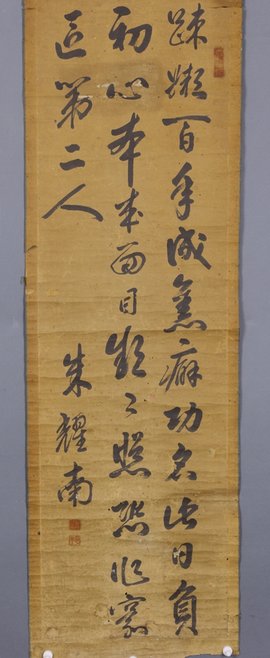 释文:疏懒百年成旧癖,功名此日负初心。本来面目频频照,恐作寰区第二人。款署:朱耀南。