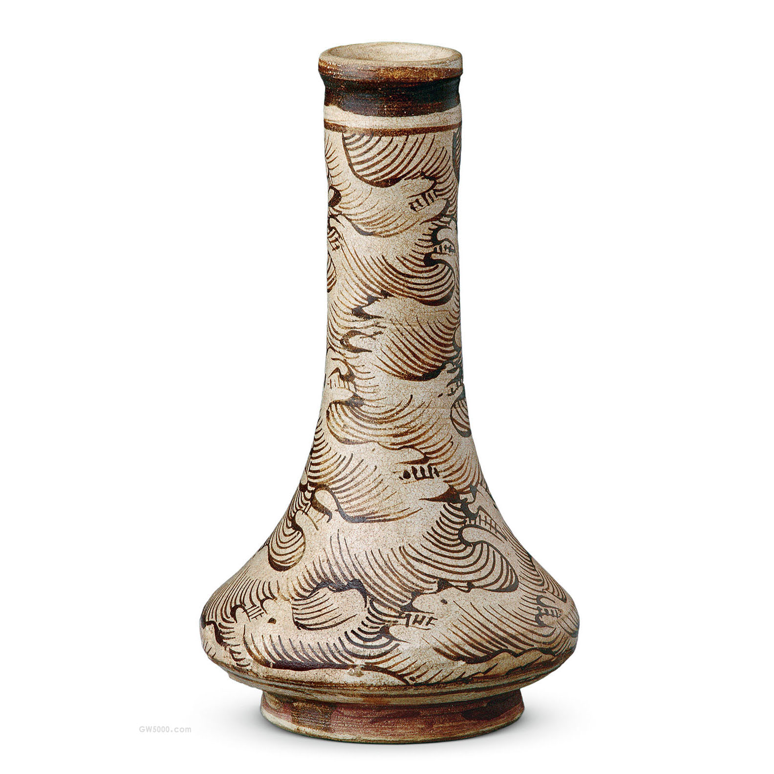 设计使波涛呈现出奔腾翻滚的磅礴之势。吉州窑褐彩