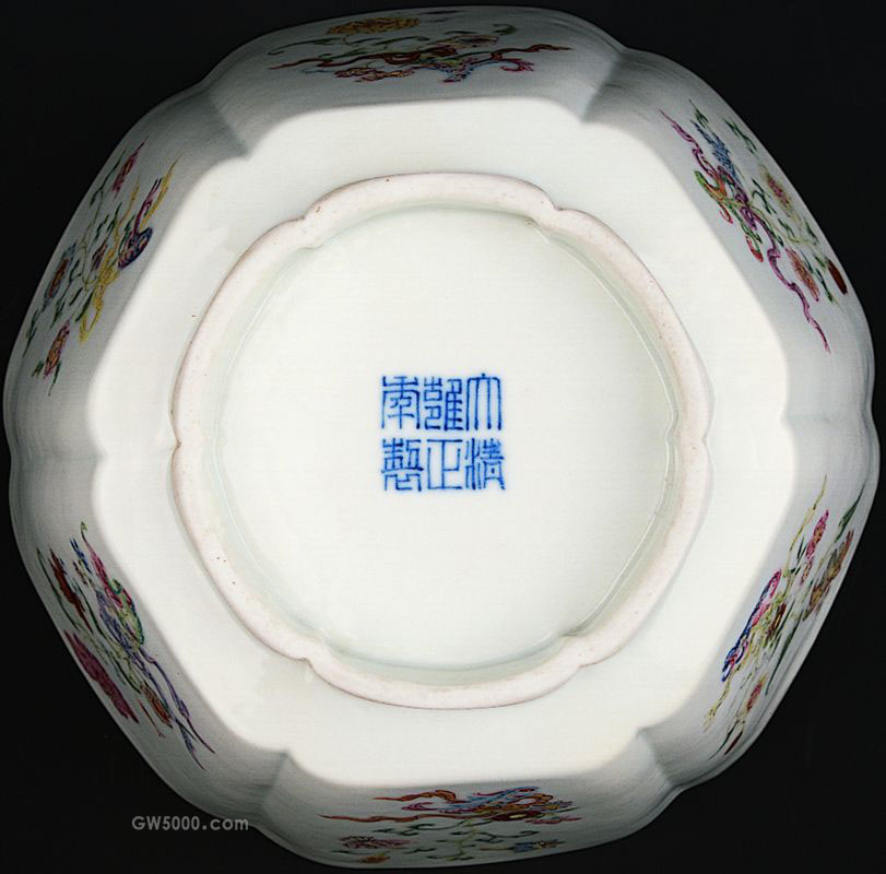 人物、花草、虫蝶等纹样。六方碗为清雍正年间