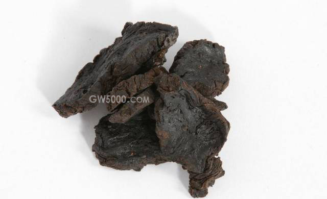 形态特征:呈不规则团块或长圆形,中间膨大大,两端稍细,长6~12cm,真径3~6cm,有的细长条状,稍扁而扭曲。表面灰黑色或棕灰色,极皱缩,具不规则的横曲纹。体重,质较软韧,断面灰黑色、棕黑色或乌黑色,微有光泽,具粘性。气微,味微甜。以块大、体重、断面乌黑油润、味甘者为佳。