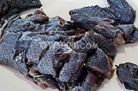 入药部位:为雉科动物乌骨鸡Gallus gallus domesticus Brisson去羽毛及内脏的全体。