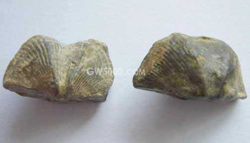 形态特征:本品似完整的瓦楞子状。长2-4cm,宽1.5-3.5cm,厚1.5-2cm。青灰色至土棕色。两面均有从后端至前缘的放射状纹理,基中一面凸度低于另一面,中部有似三角形隆起;另面有与隆起相应形状的凹槽,槽的纹理较细密,槽的前端向下略弯曲,呈半圆弧形突出。质坚硬,可砸碎,断面较粗糙,土黄色或青白色,对光照之具闪星样光泽。气微,味淡。以状如蚶、色青黑、质坚硬无杂石者为佳。