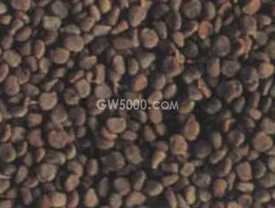 形态特征:呈类扁肾形或扁卵形,直径约1mm。表面棕黄色或灰黄色,有细密的网纹,略尖的一端有点状种脐。切面灰白色,油质,有胚乳,胚弯曲。气微,味微辛。