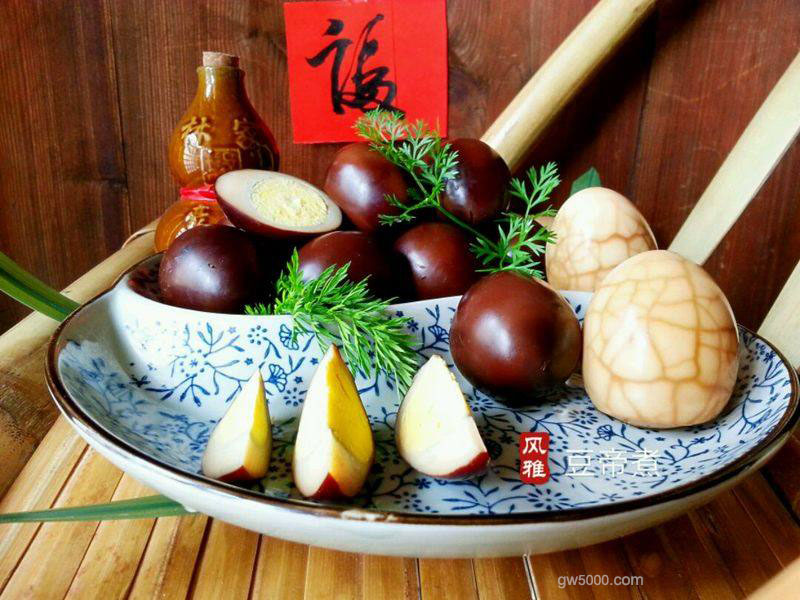 6一级棒的蛋(不用担心不入味长时间的卤制已经入骨,切勿用刀刬蛋影响美观),欧巴另外带壳做了二个琉璃茶叶蛋当装饰。低调土豪的世界你不懂