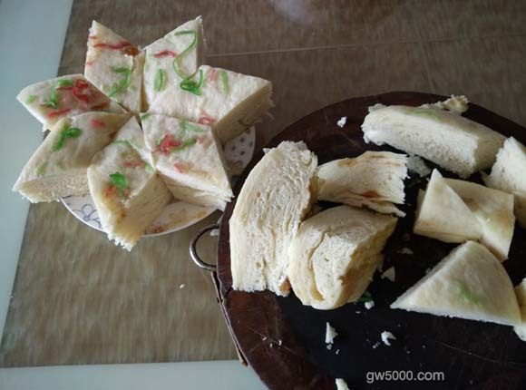11晾凉后,刀切改刀成菱形块,吃时上锅略蒸。