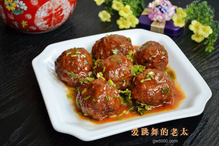 18把芡汁浇在狮子头上即可食用。
