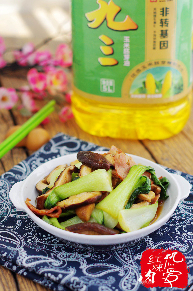 今天家里没有肉了,炒菜素炒我又不爱吃,于是用了培根炒的香菇油菜,味道也不错嘿嘿。香菇是具有高蛋白、低脂肪、多糖、多种氨基酸和多种维生素的菌类食物,多吃一些对人体健康有利。