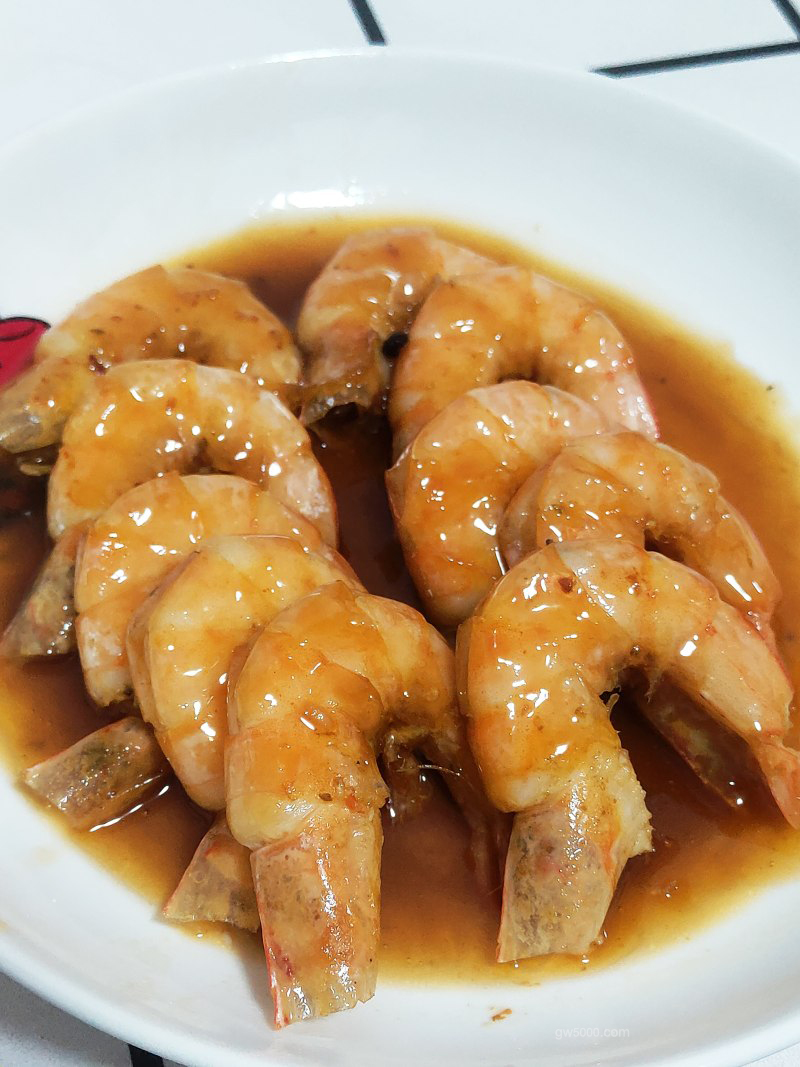 - 9把汤汁淋在大虾上,简易版正宗鲁菜油焖大虾出锅。
