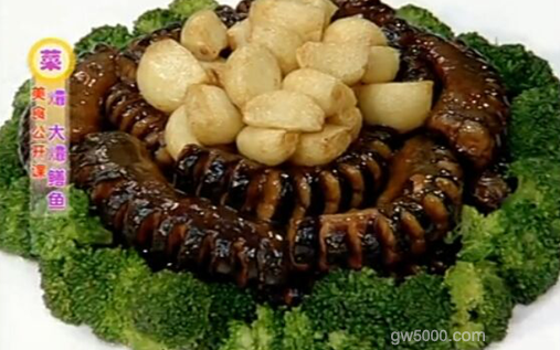 9将西蓝花和鳝鱼装盘,中间留点空余,然后把炸好的大蒜放进去,大鮳鳝鱼就这样做好啦!这是要馋死人的节奏呀!光看这颜色都忍不住要去吃一口。