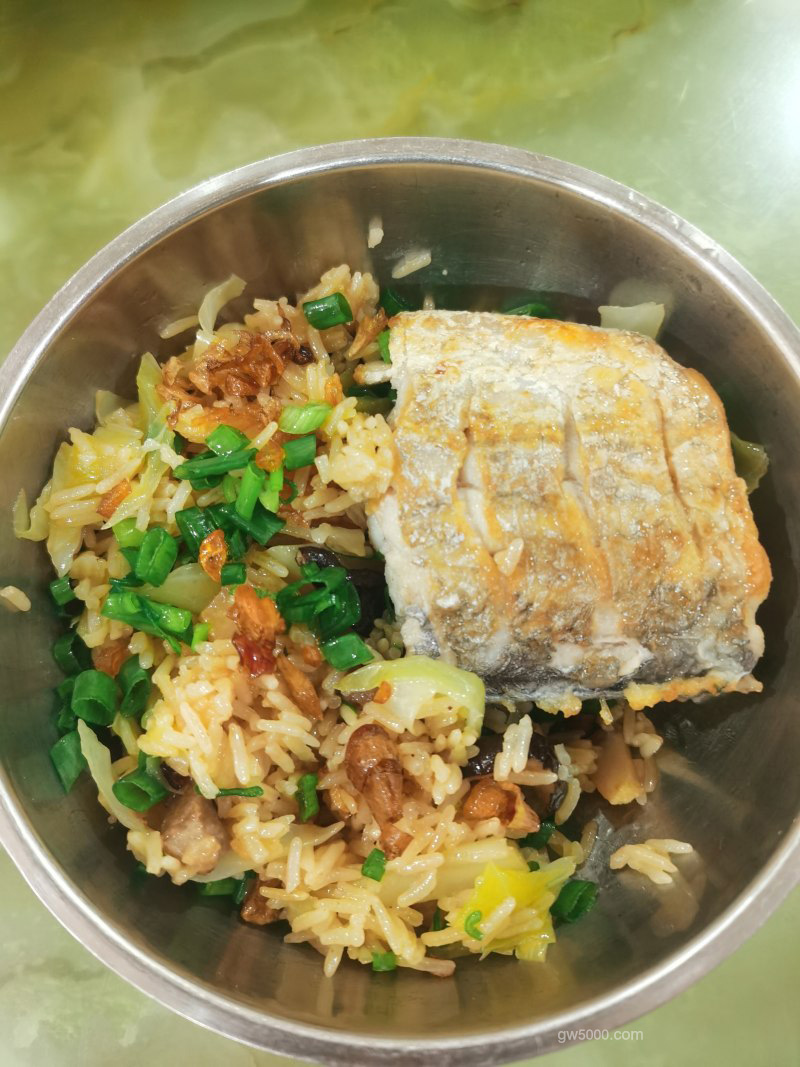 注意:米和水同份量,煮的饭刚刚好,如果有加到菜,水要少一点点,因为菜里有水份,灵魂所在:炸葱花前的油先用姜炸出姜汁再炸,拌饭非常香。
