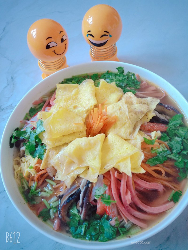 - 9各种菜丝都准备好了,因为家人爱吃素的,所以素一些。真正的牡丹燕菜是有鱿鱼丝,海参丝,牛肉丝的,汤是酸辣鲜香的。