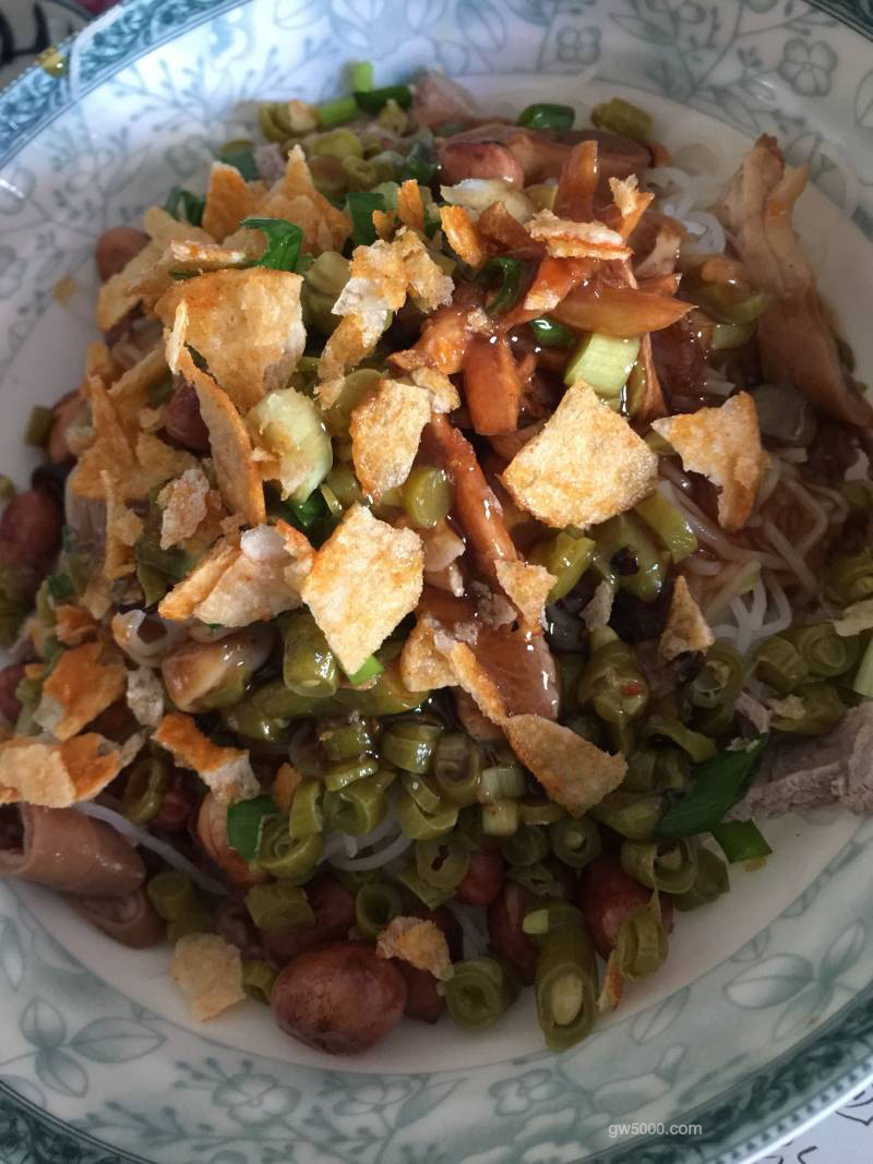 米粉侵泡一夜后沥干水,涂抹上均匀的玉米油,上笼屉蒸5分钟。凉凉后待用。