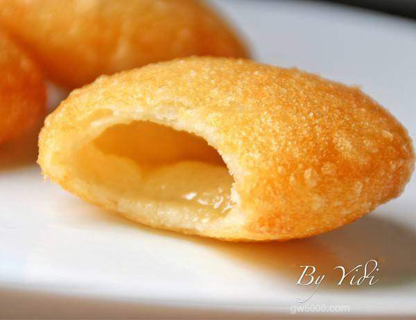 - 10油锅烧至140度,逐个放入(一次只能放几个,以防粘连),轻轻晃动油锅,浮起后注意翻面,炸至金黄色捞出。