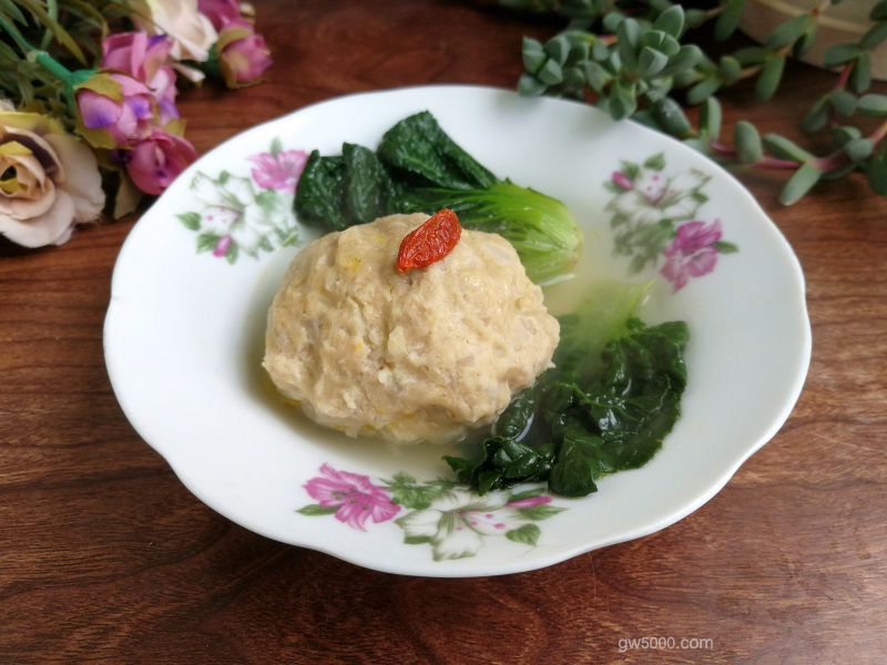 狮子头有多种烹调方法,既可红烧,亦可清蒸。今天的蟹粉狮子头放在砂锅里置于碳炉上小火慢炖,成菜口感松软,肥而不腻,细品之,蟹粉鲜香,入口而化,汤汁也非常的美味。”